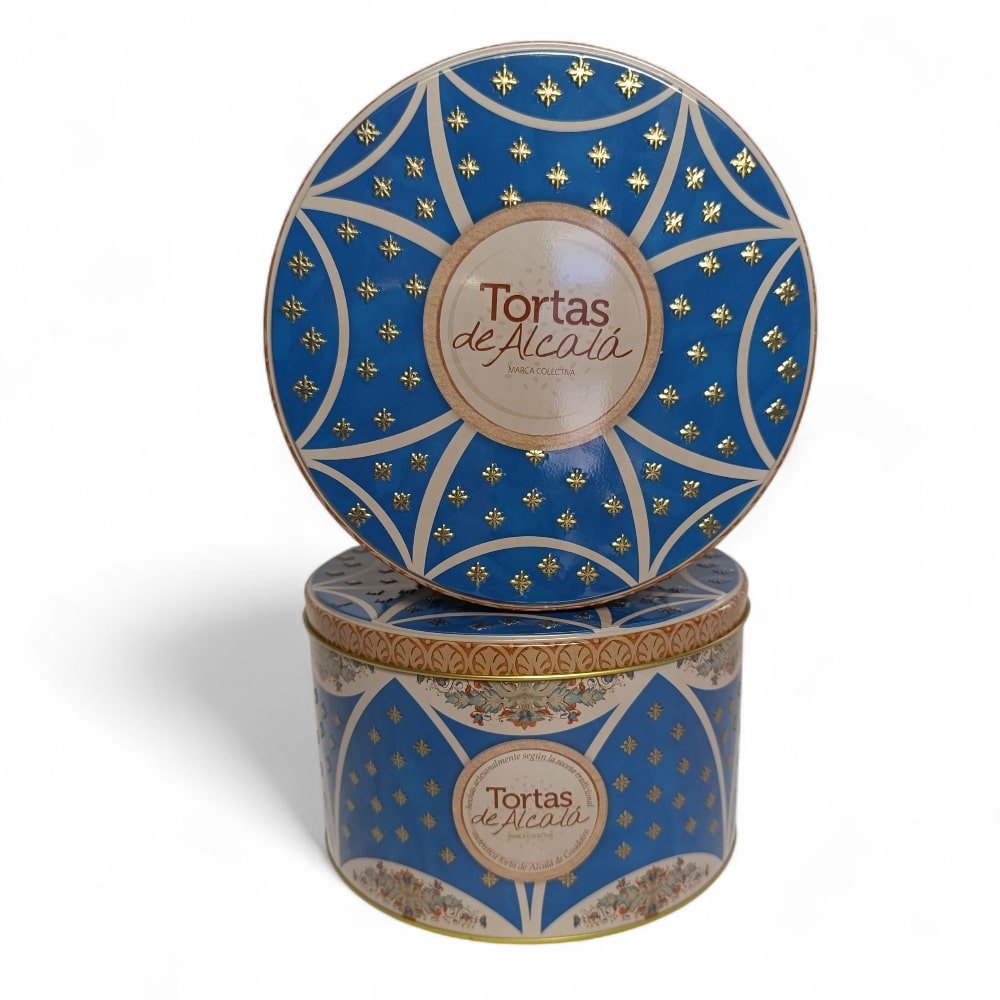 Estas deliciosas tortas de Alcalá vienen presentadas en una exclusiva lata de lujo coleccionable diseñada por la Asociación de Productores de las Tortas de Alcalá que las mantiene y facilita su envío siendo además un magnifico producto para regalar.
